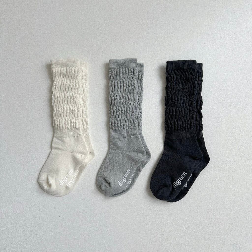 あたたかみのあるカラーと上品なディテールが魅力のウォーマーソックスセット。クリーム・メランジ・チャコールの3色展開で、お子さまの足元にスタイリッシュなアクセントを添えます。コットン78%・ポリエステル20%・スパンデックス2%の絶妙なバランスで、柔らかく快適な履き心地と優れた伸縮性、そして高い耐久性を実現。特に足首をやさしく包み込むシャーリング仕様がポイントで、見た目にもかわいく、履き心地の良さも抜群です。