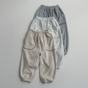 やわらかくふんわりとしたフラッフィー素材で仕立てられた、着心地抜群のパンツです。ポケット部分のステッチディテールがさりげないアクセントになり、シンプルながら可愛らしさをプラス。ウエストゴムと裾のジョガー仕様で安定感があり、動きやすさとスタイルの両方を叶えます。どんなトップスにも合わせやすいベーシックなカラーと、ぬくもりを感じる質感で、お出かけにもおうち時間にもぴったりな1本です。