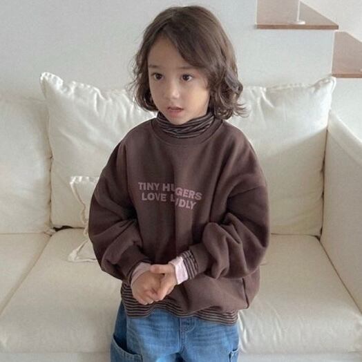 お子さまの可愛さをさらに引き立ててくれるポイント♡ネイビー・ブラウン・オートミール、どのカラーを選んでも雰囲気がありおしゃれに決まります。デニム、ジョガー、コーデュロイパンツとも相性抜群!保温性・スタイル・動きやすさ、すべてを兼ね備えた冬のデイリーウェアの定番スウェットです。