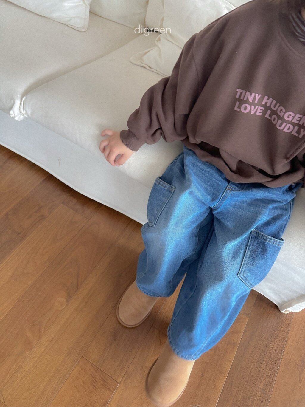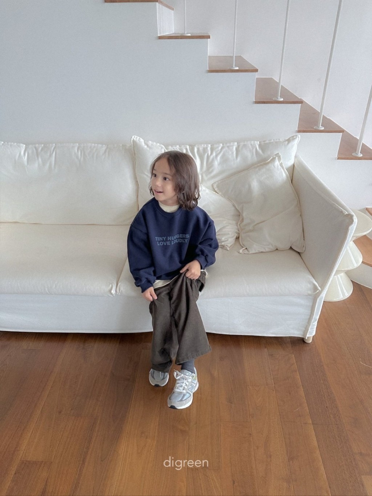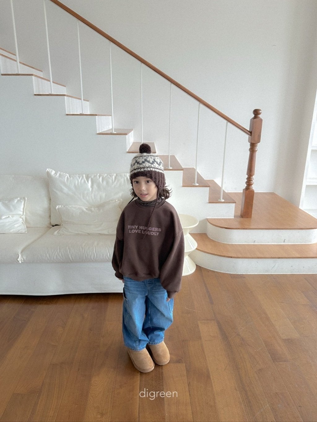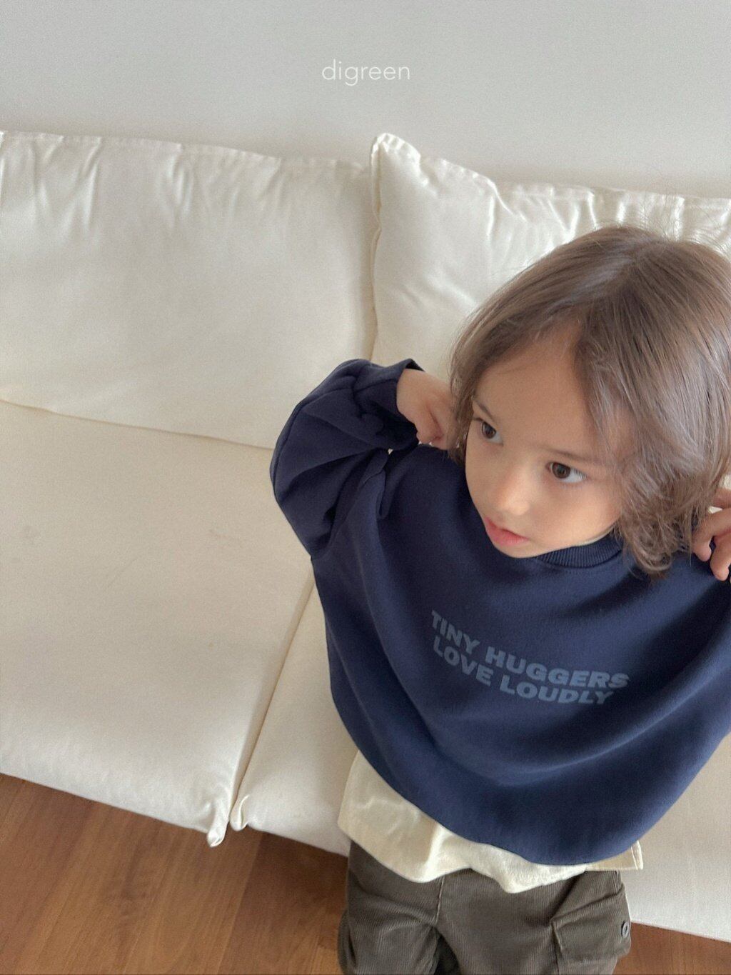 ゆったりとしたルーズフィットで動きやすく、中にTシャツやタートルネックを重ねてもバランスよくおしゃれに着こなせます。胸元中央の「TINY HUGGERS LOVE LOUDLY」プリントが