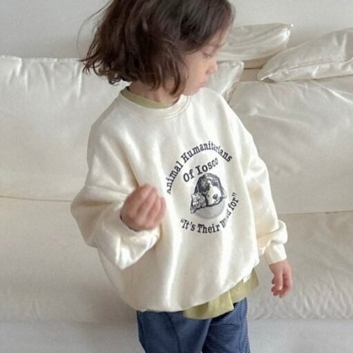 見た瞬間に思わず笑顔になる犬のプリントがポイントで、落ち着いた色合いなのでどんなコーデにも合わせやすいアイテムです。デニム、コーデュロイパンツ、ジョガーパンツ、さらにはレギンスとも相性抜群!これ一枚でナチュラルにスタイルが完成し、写真を撮るときのアクセントにもなります。快適さと可愛らしさを兼ね備えたデイリールックとしておすすめです。