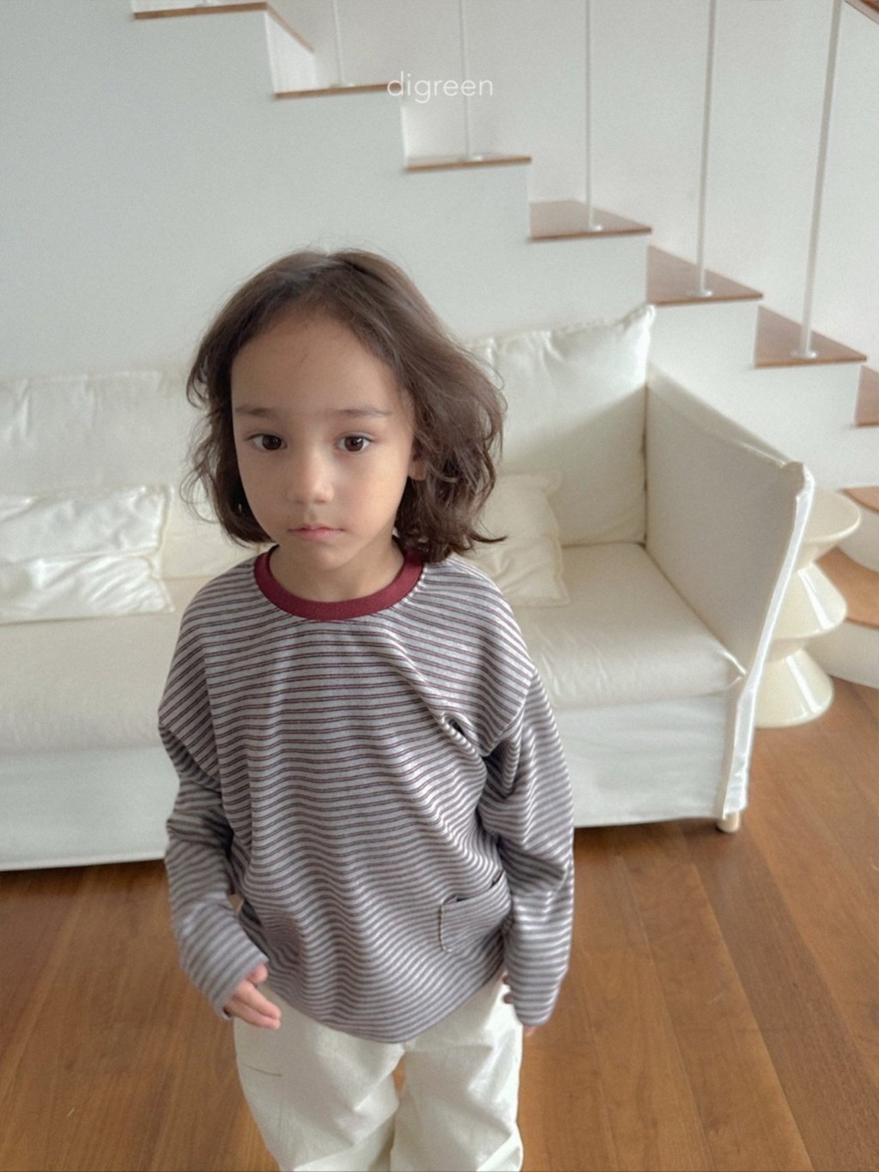 写真を見ただけでもわかる通り、毎日着たくなるデイリーアイテムです。さりげないストライプ柄とゆったりとしたシルエット、そして片側についたかわいい小さなポケットがポイント。この小さなポケットがあるだけで、単独で着てもシンプルすぎずおしゃれに見えます。秋は一枚で、冬はパディングやカーディガンのインナーとして、春は軽く羽織るだけでコーデが完成。季節を問わずずっと着られる実用的なアイテムです。かわいらしいけれどやりすぎず、