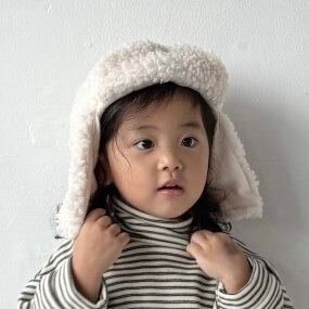かわいいもこもこ軍手帽です。裏地には柔らかいポーラフリースを使用して保温性をアップ。ボタンには高級ボタンのサングリップボタンを採用しています。もこもこベストと同じ生地で、セットのようにコーディネートしてもかわいいアイテム