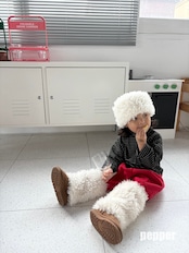 今シーズンのPEPPERのイチオシアイテム、メーテル帽&ウォーマーセットです。表地のファーは高価でも高級感のあるファー素材を使用。