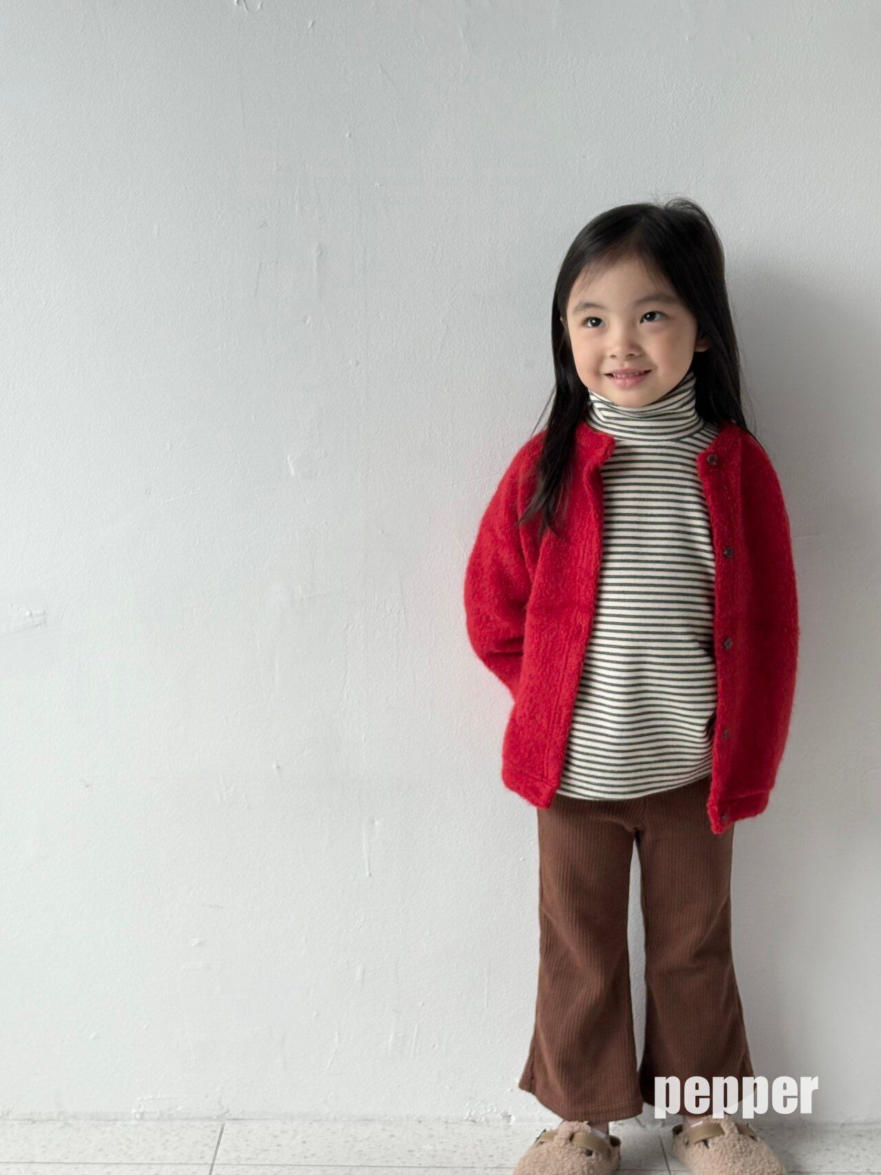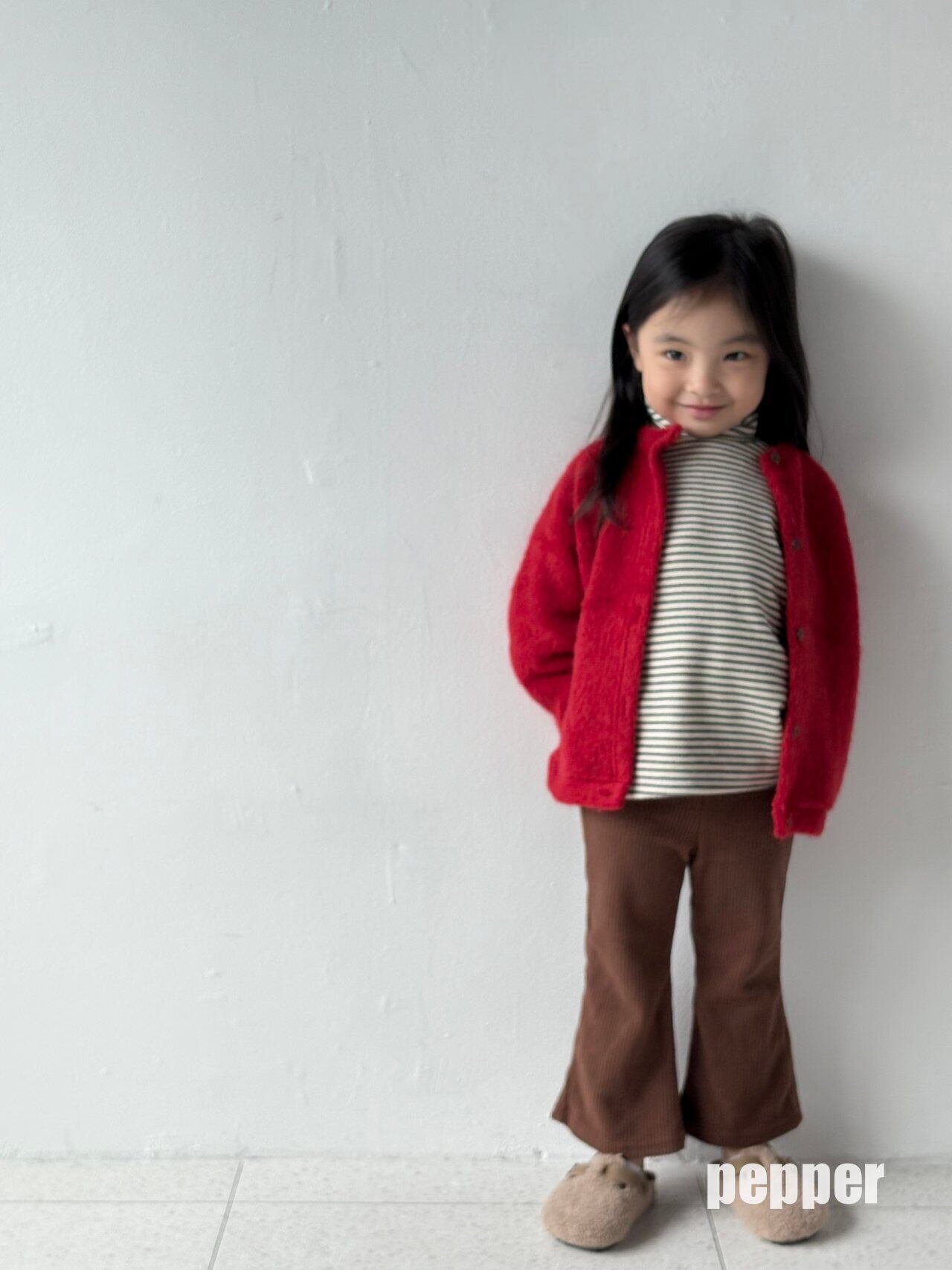 しっかりとして柔らかいリブ起毛素材で、快適な着心地のブーツカットパンツです!厚すぎない生地なので、保育園や室内で着せるのにちょうど良い厚みの起毛パンツです :)デイリー使いにぴったりで、つい手に取ってしまうアイテムです