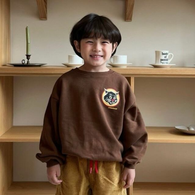 これまでのカラーマンツーマンとは少し違うデザインで、リブ襟にアレンジしてカジュアルな雰囲気をプラスしました!可愛い配色カラーで、男の子・女の子どちらにもデイリーコーデアイテムとしておすすめ!