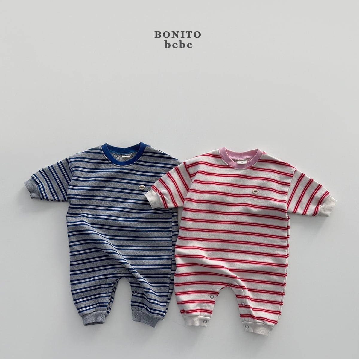 こちらはBONITO/tom tom stripe ロンパースです。