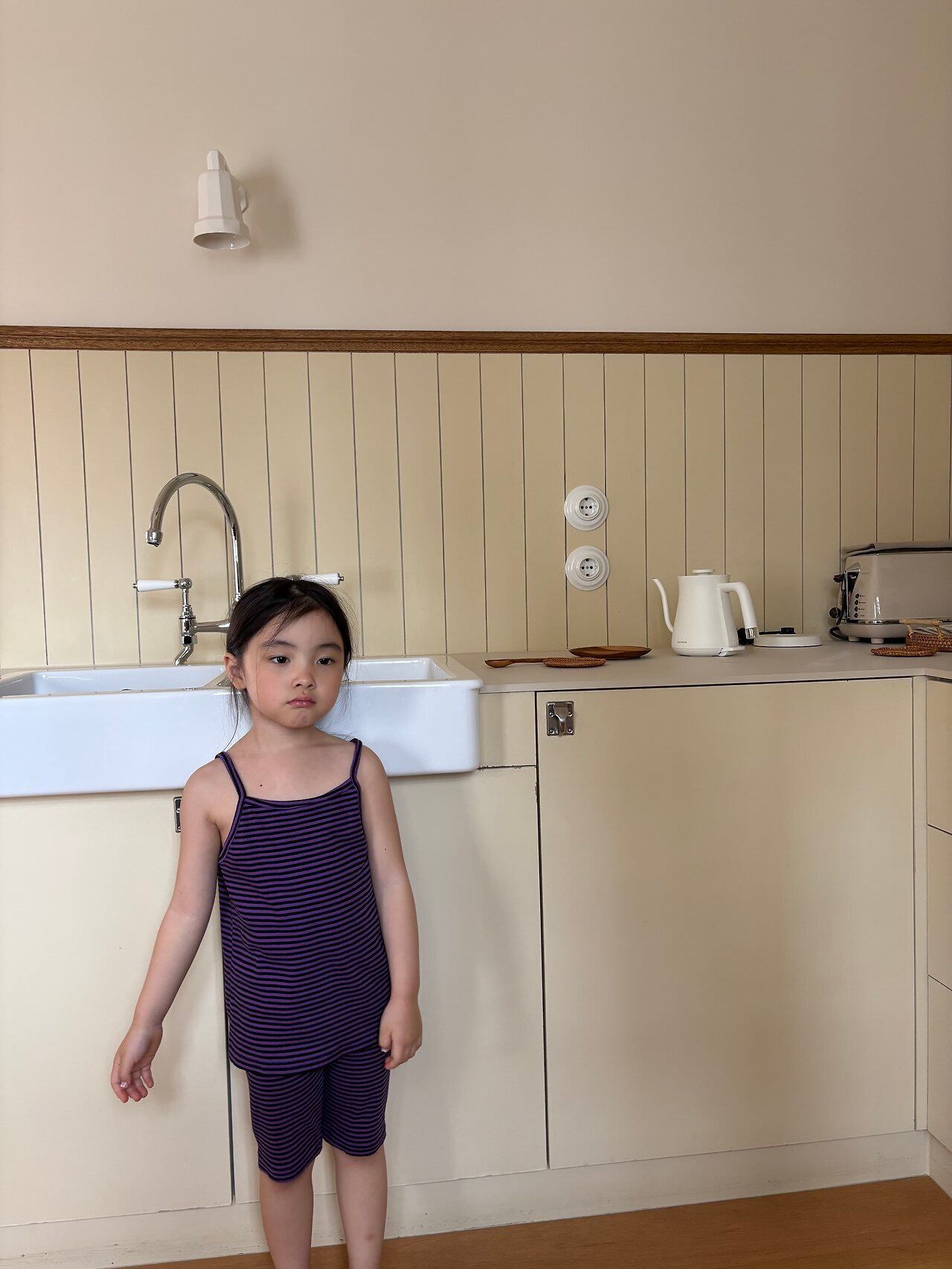 どんなコーデにも使いやすいボーダータンクトップです!しっかり伸びてフィットする、テンションの良い素材で着心地も◎特にパープル×ブラックのストライプは、実際に見ると珍しく上品なカラーでとてもおすすめです♡オディ5分丈レギンスとセットアップ風でのコーディネートも可能です!