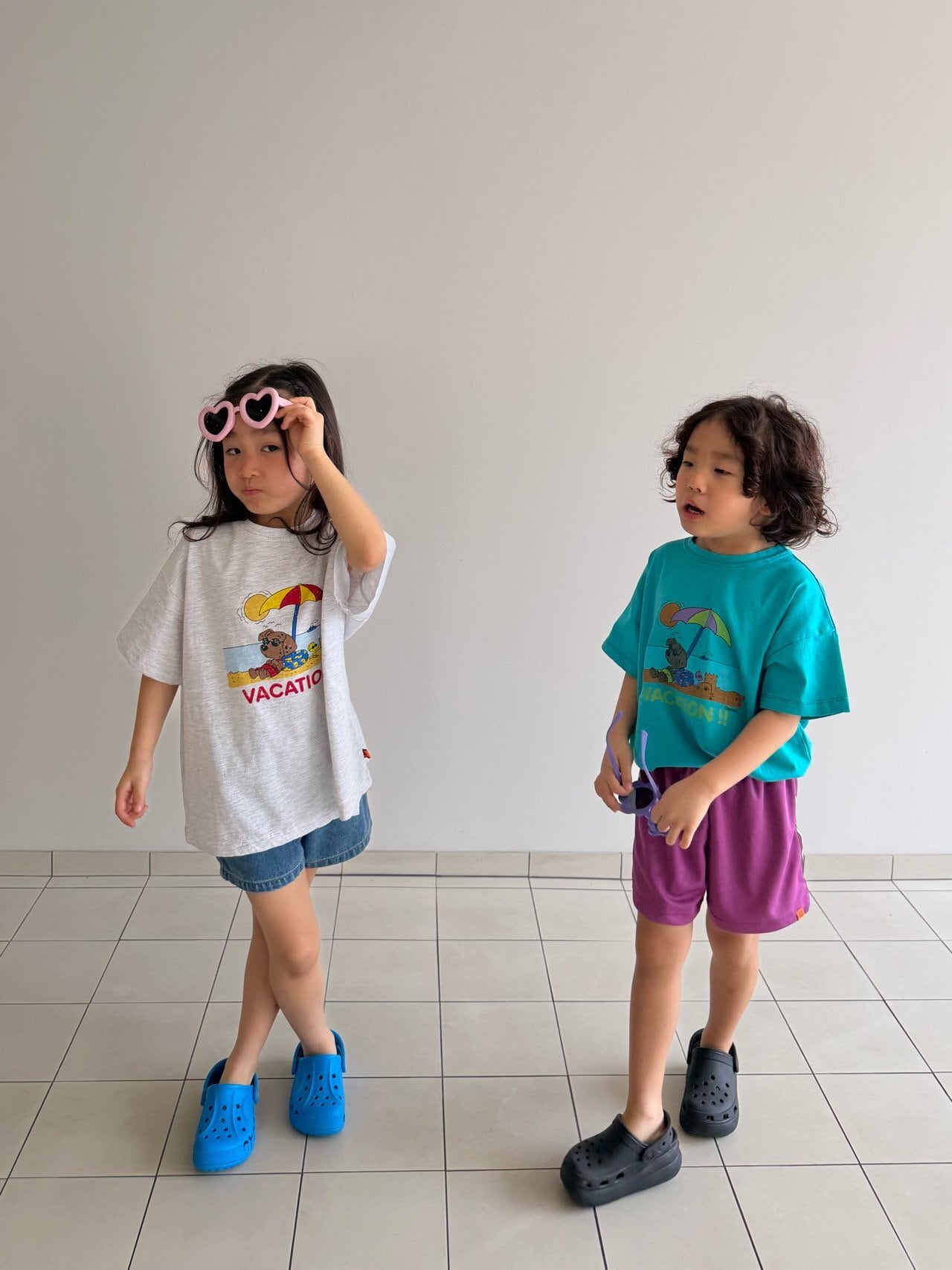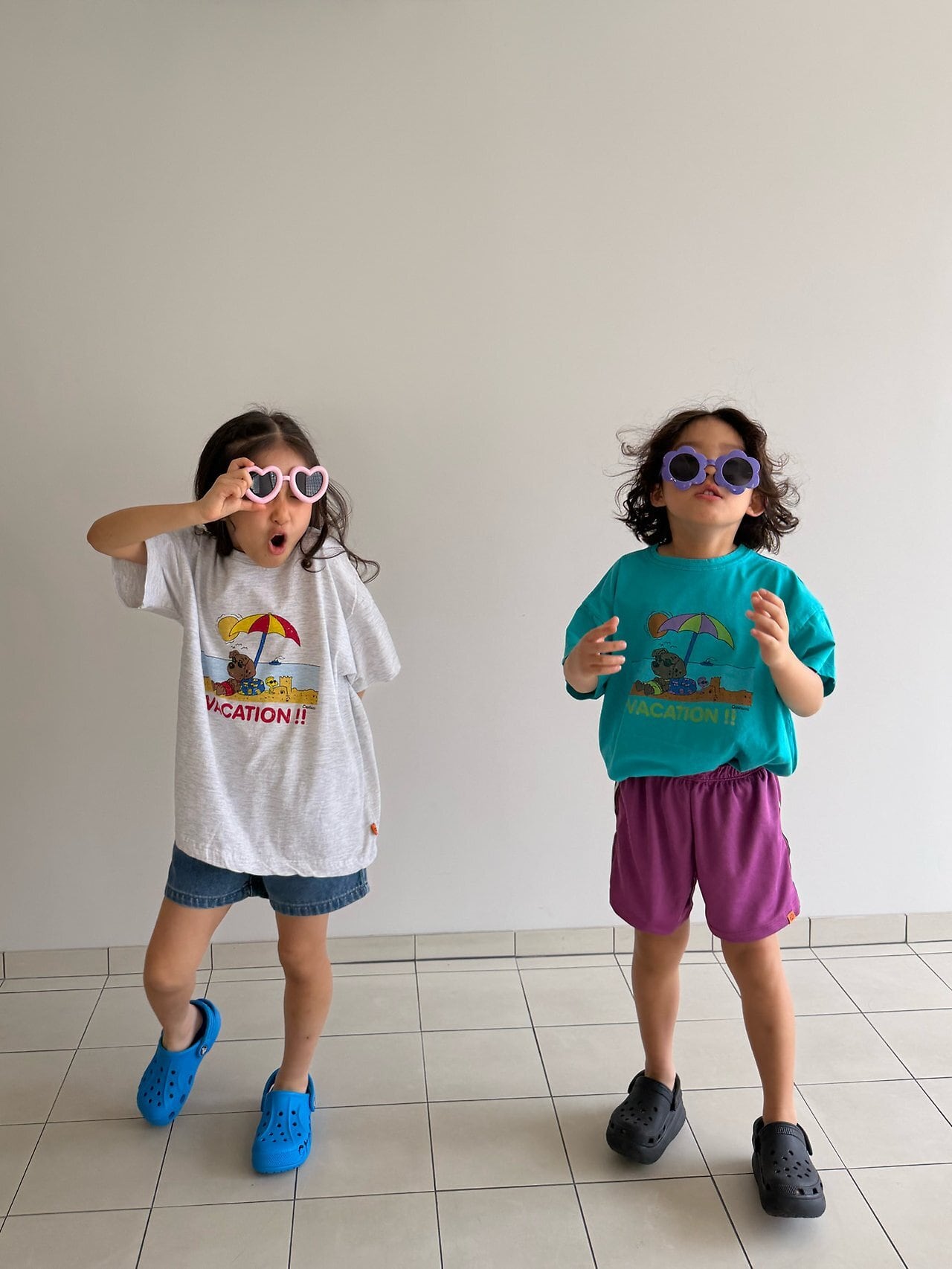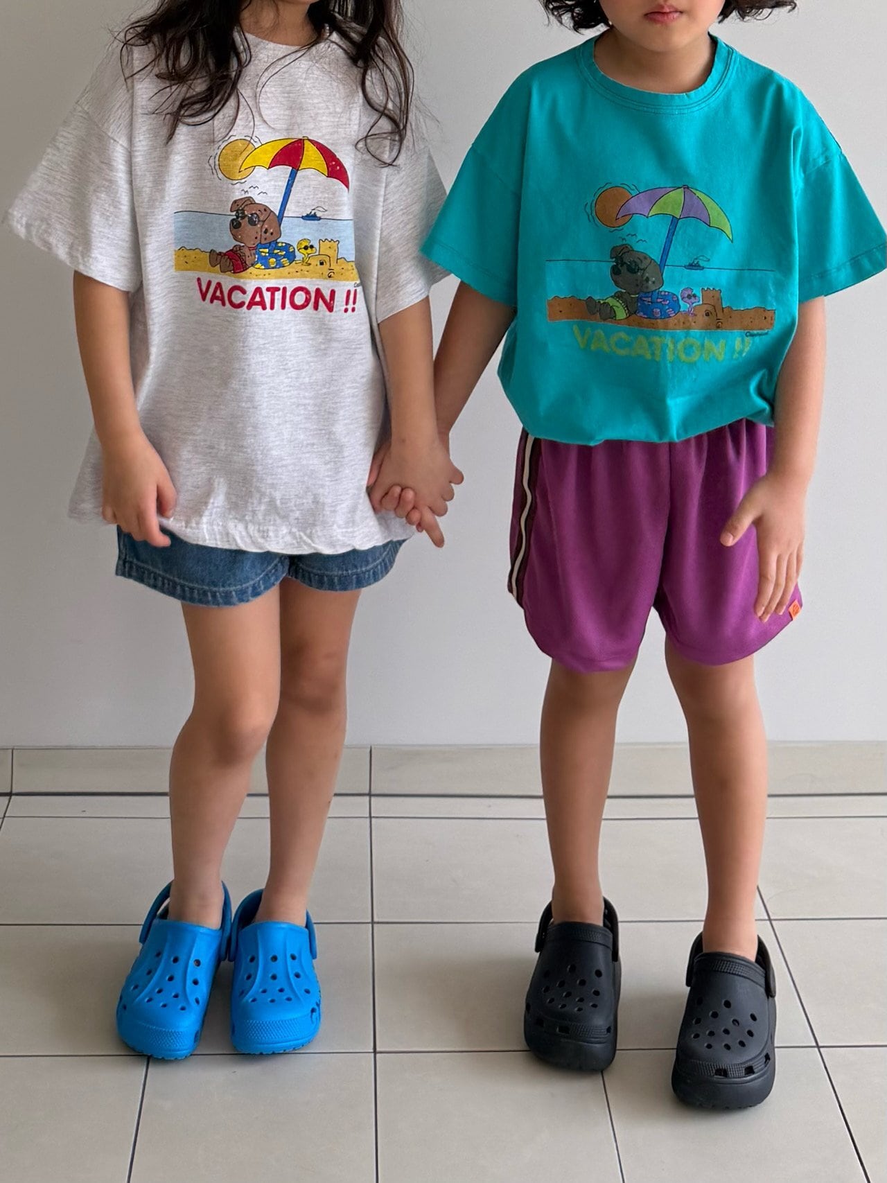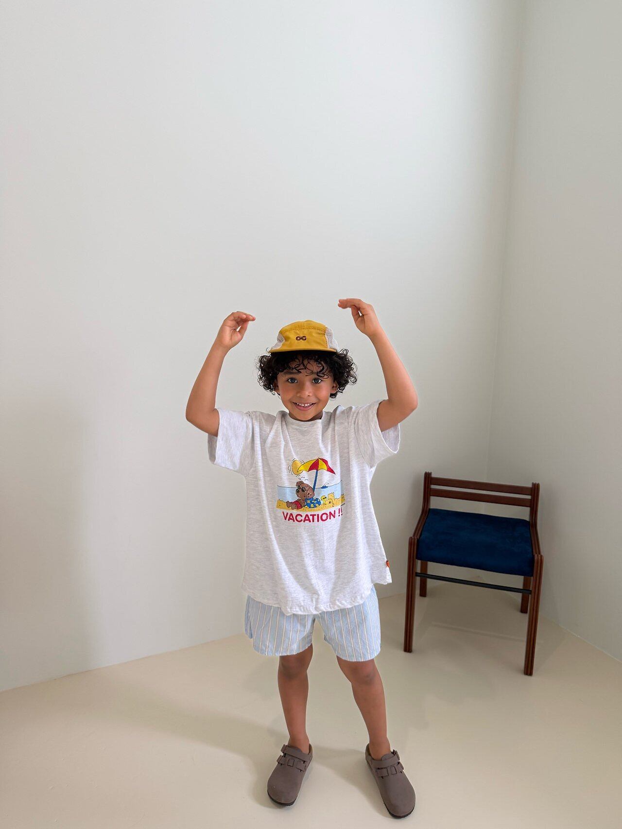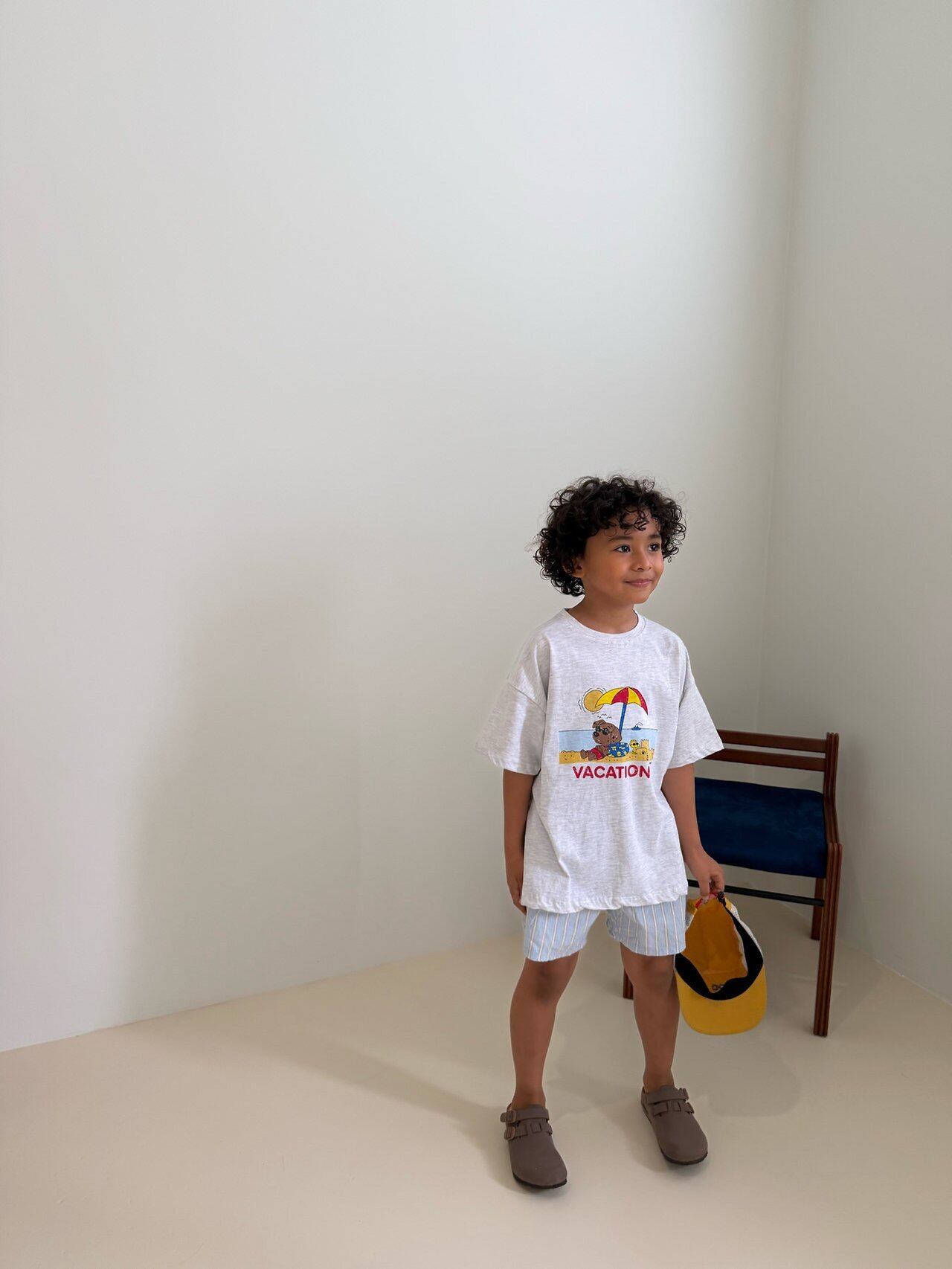 夏にぴったりなプリントで、可愛い動物たちがビーチで日焼けしている姿をイメージして描かれたバスケーションTシャツです!