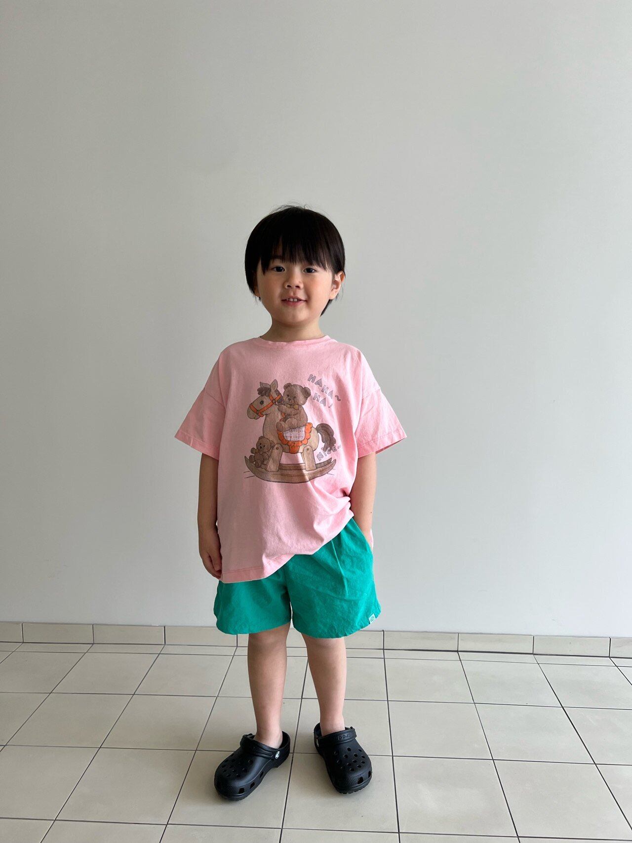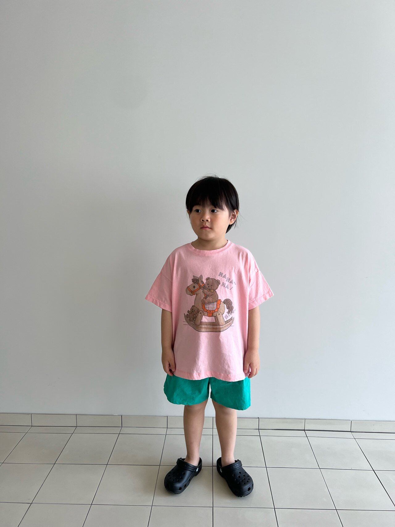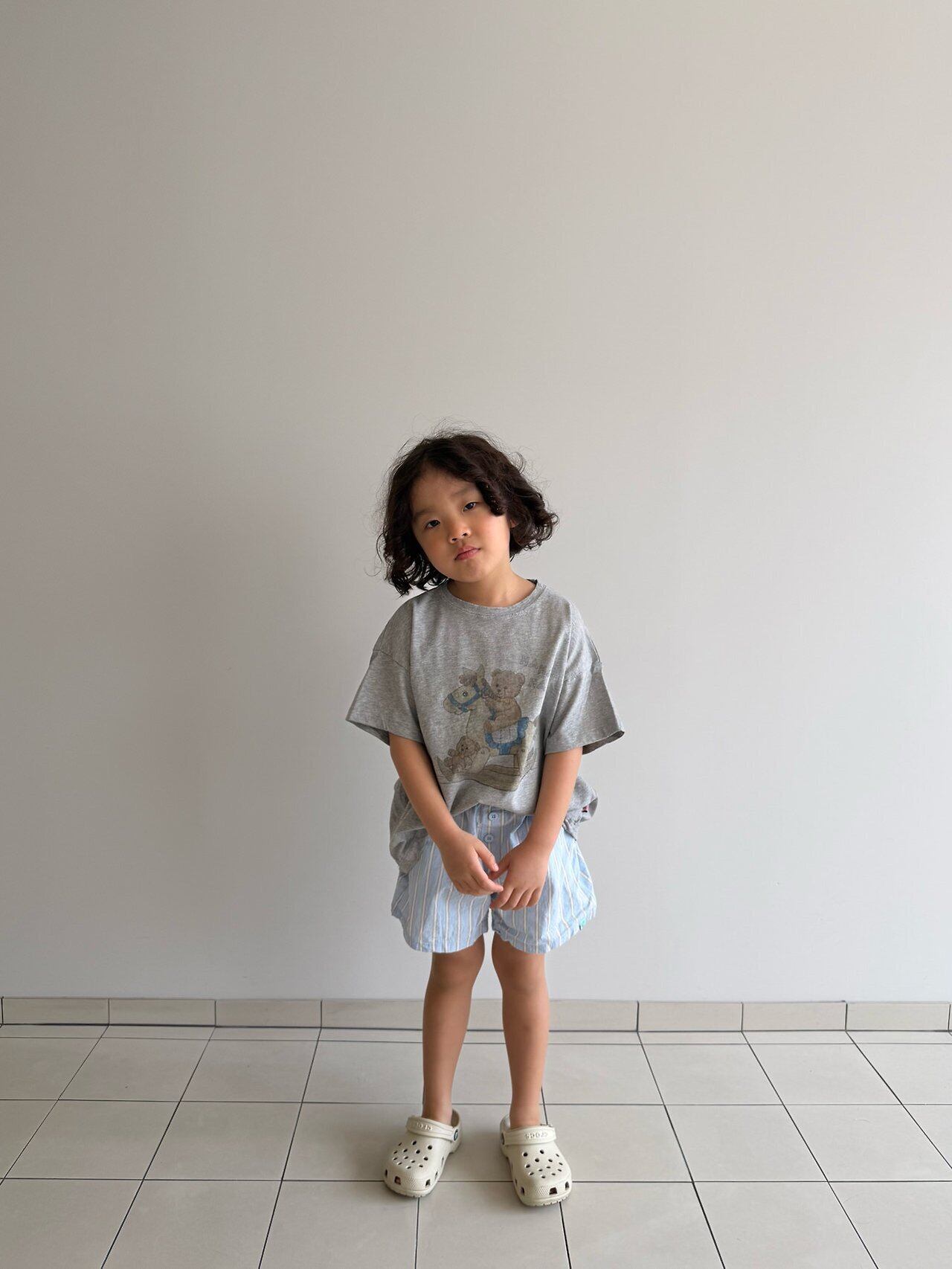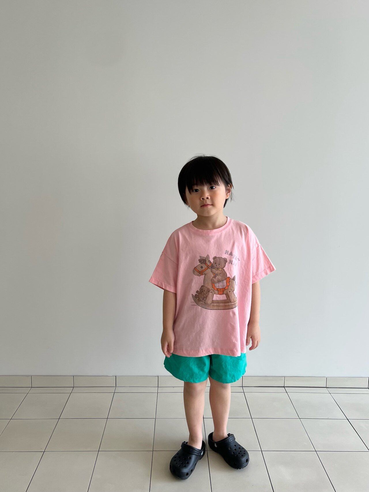 fogri Tシャツです!愛らしいムードで、どんなコーデにも合わせやすいゆったりとしたボクシーフィットのTシャツなので、男の子・女の子どちらにもおすすめです!