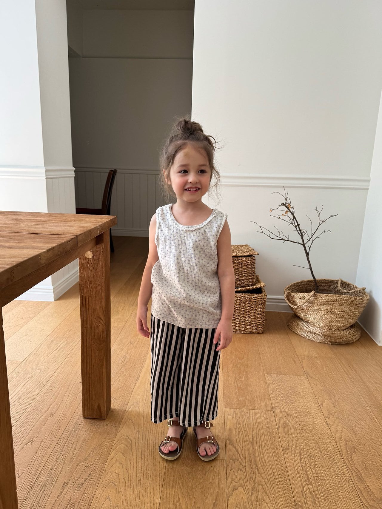 ストライプパターンが爽やかで、すっきりとした印象のパンツ。薄くて軽い素材に、ストンと落ちる自然なシルエットで快適な履き心地です。シンプルながらコーデのポイントにもなり、デイリーに使いやすいデザイン。