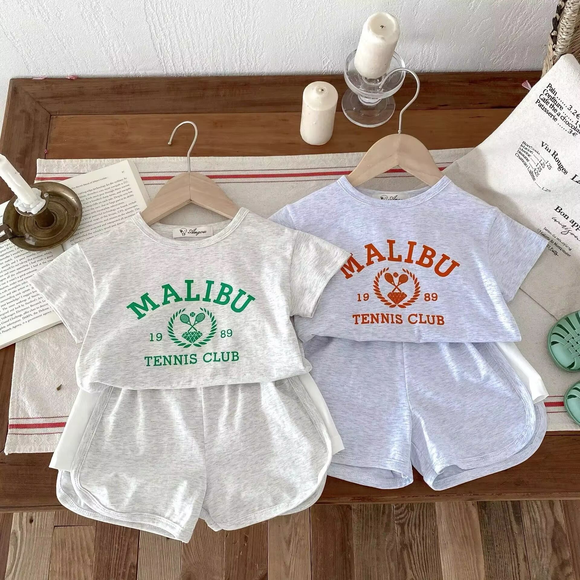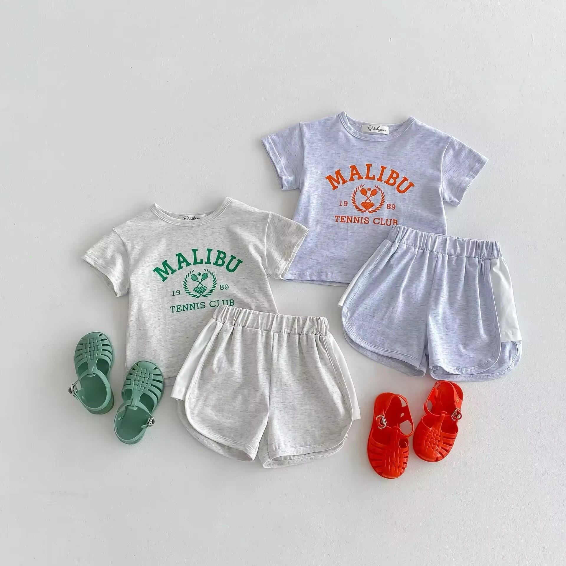 スポーティーなTシャツとショートパンツのセットアップです!夏らしいカラーのロゴがポイント✨