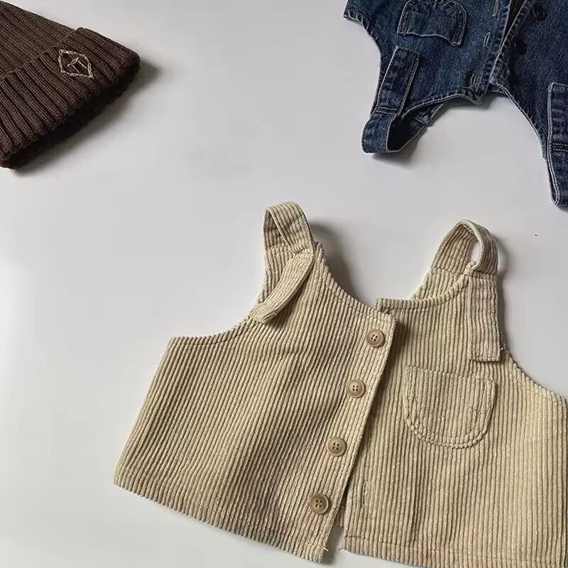 ブルーはデニム素材で、ベージュはコーデュロイ素材です!オーバーサイズのトップスに重ねる場合は、ワンサイズ大きめがおすすめ!